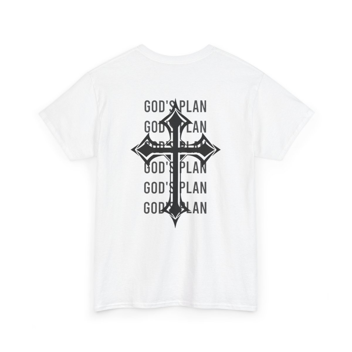 “God’s Plan Graphic Tee – bold style with a deeper meaning. Crafted from premium cotton for all-day comfort, this tee features a clean front and a powerful ‘God’s Plan’ print on the back. Perfect for streetwear lovers and casual looks, it’s designed to stand out whether worn solo or layered. Limited edition – grab yours before it’s gone!”
